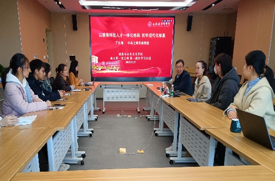 为深入学习领会、全面深入把握党的二十届四中全会精神内涵与核心,并将其转化为推动事业发展的动力,3044永利集团官网教工第一党支部于2025年11月27日组织了一场主题为“学习贯彻党的二十届四中全会精神,以教育科技人才一体化格局,筑牢现代化根基”的主题党日活动(暨教职工政治理论学习)。活动特邀中共上海市委党校丁长艳副教授作专题辅导报告,本次党日活动还邀请了公司团总支的员工入党积极分子参加。