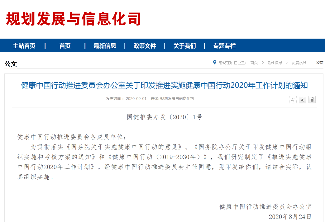 2020年9月1日,健康中国行动推进委员会办公室发布的关于印发推进实施健康中国行动2020年工作计划的通知(国健推委办发〔2020〕1号)文中提到加强营业专业人才队伍建设,试点推进开展公共营养师的培训。